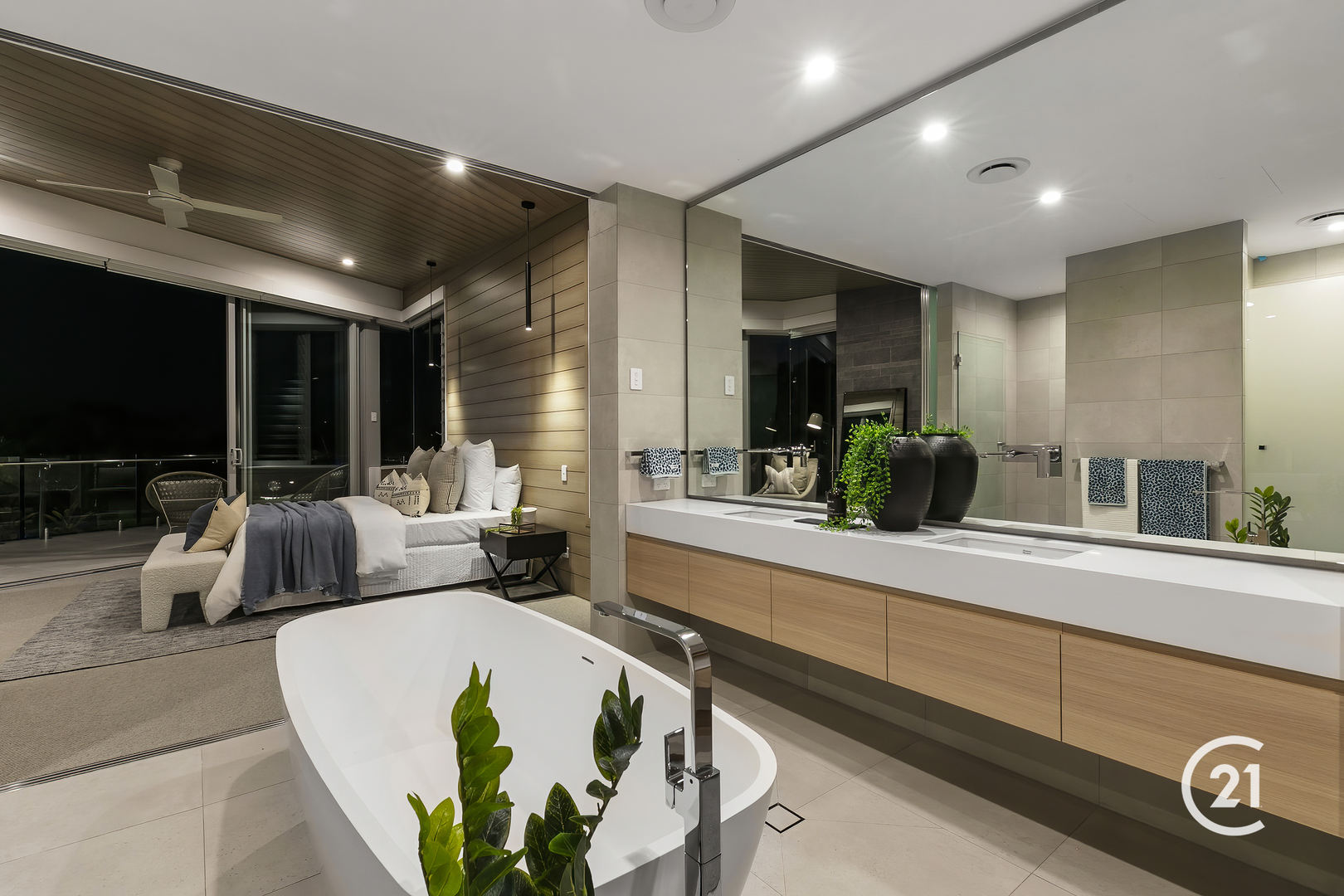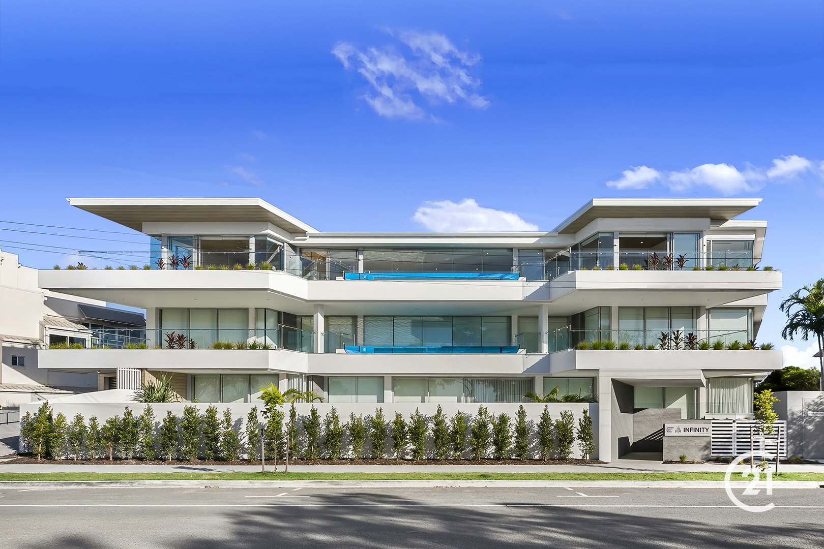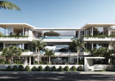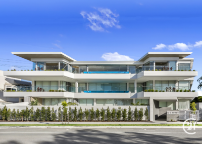 Infinity, located in Noosa Queensland is a collection of three luxurious penthouse-style residences, each designed with an intelligent, contemporary layout that maximises coastal views and natural light. These house-sized masterpieces feature exquisite craftsmanship, with spacious terraces and infinity-edged pools on each level. Design elements by Chris Clout Design include oak timber flooring, stone benchtops, high-end European appliances, and natural-toned tiling, creating a serene, upscale atmosphere. Full-height glass windows and thoughtful thermal comfort design enhance the connection to Noosa’s breathtaking natural surroundings, making Infinity the epitome of luxury coastal living.
